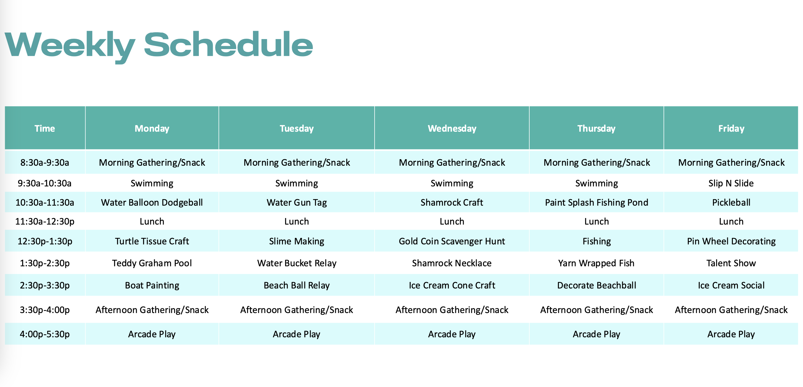 Campers will splash into exciting water activities, play outdoor games, and soak up the warm spring air in a safe, energetic environment. Each day is packed with laughter, movement, and memorable moments —making it an unforgettable spring break experience filled with sun, smiles, and adventure.