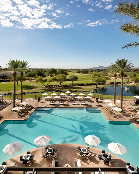 The resort features 750 guest rooms, including the newly renovated Privado Villas, six heated swimming pools, world-class dining a Toro Scottsdale, Bourbon Steak and La Hacienda, a 44,000 sq ft Well & Being Spa, and adjacent championship golf at the TPC Scottsdale.