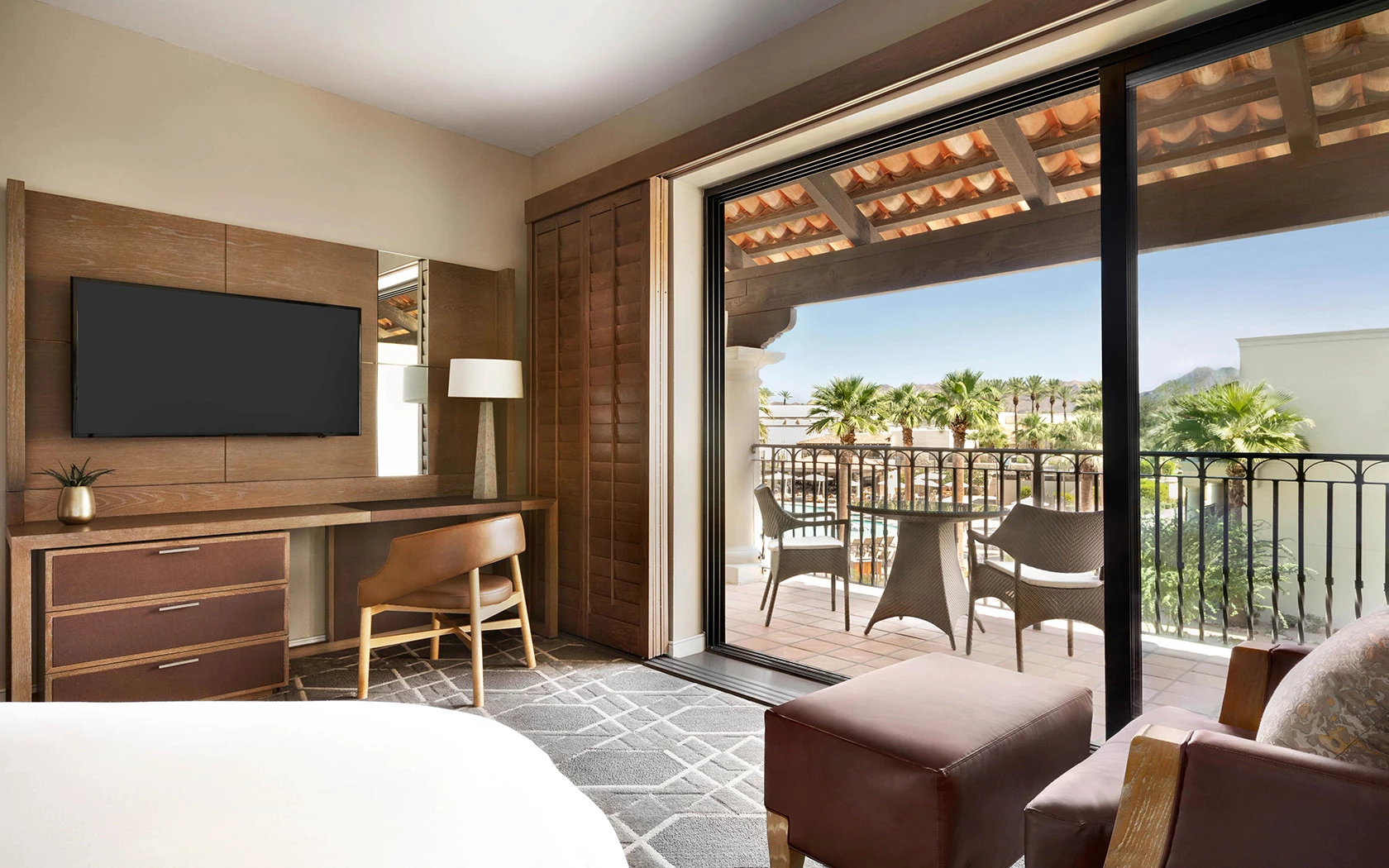 Embrace the warm glow and natural beauty of the desert in our newly refreshed guest rooms, where views of lush gardens, green golf links, and blue skies entice you every hour. An abundance of creature comforts only elevate this magical experience, from sleek stone walk-in showers to chic, contemporary furnishings.