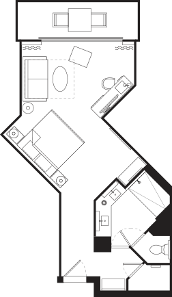 Located in our Sunset Wing, discover an alluring blend of outdoor easy-living and bohemian indoor luxury, including an oversized spa shower and spacious double vanities, as well as upgraded architectural features, from plantation shutters to a sliding hanging door between the bedroom and bath. You'll also enjoy a 50" HDTV and locally hand-crafted Thunderbird woven artwork. View is subject to availability.